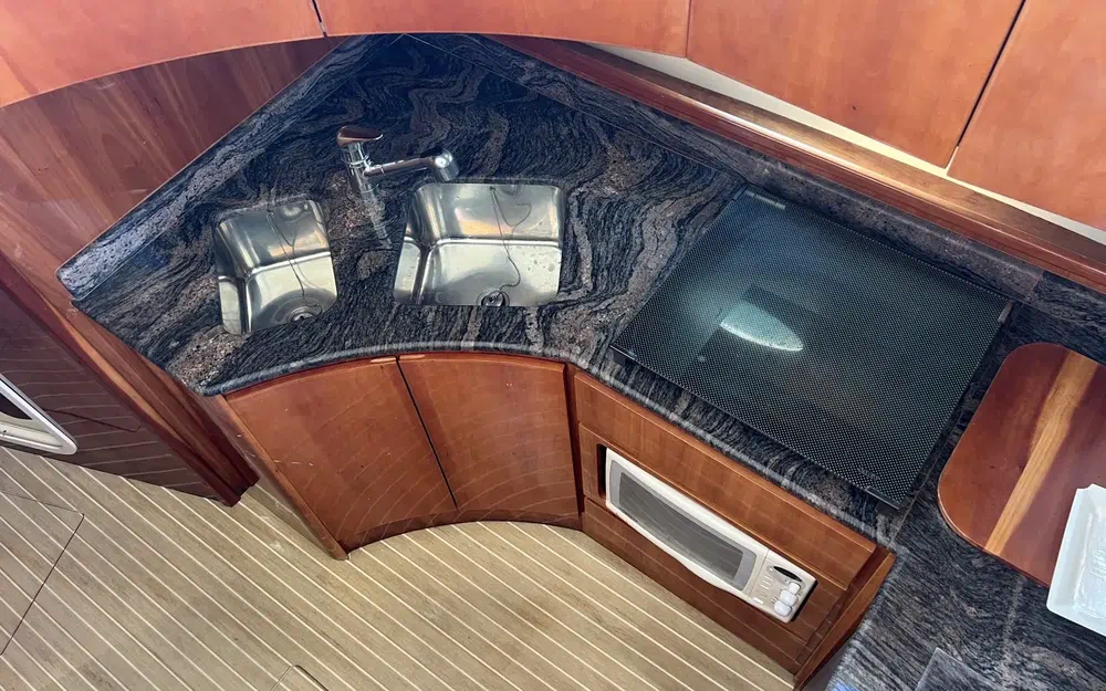Ce bateau s'adresse à un connaisseur prêt à réaliser des travaux de rénovation pour profiter pleinement de ce flybridge spacieux et performant.