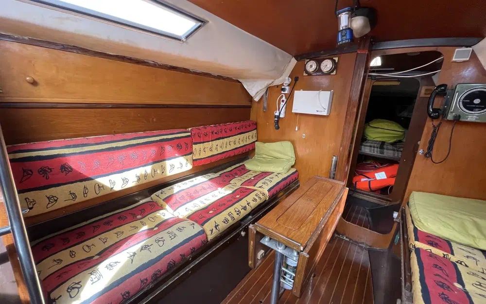 Ce voilier a été très bien entretenu, gréement révisé, etai et enrouleur changé en 2022 équipé d'une mini capote de descente à révisé sinon il reste en bon état, il montre malgré tous des signes de vieillesse, inévitablement pour un voilier de 1979 avec quelques marques mineures sur le pont de gelcoat, mais reste parfaitement en état de présentation et de navigation.