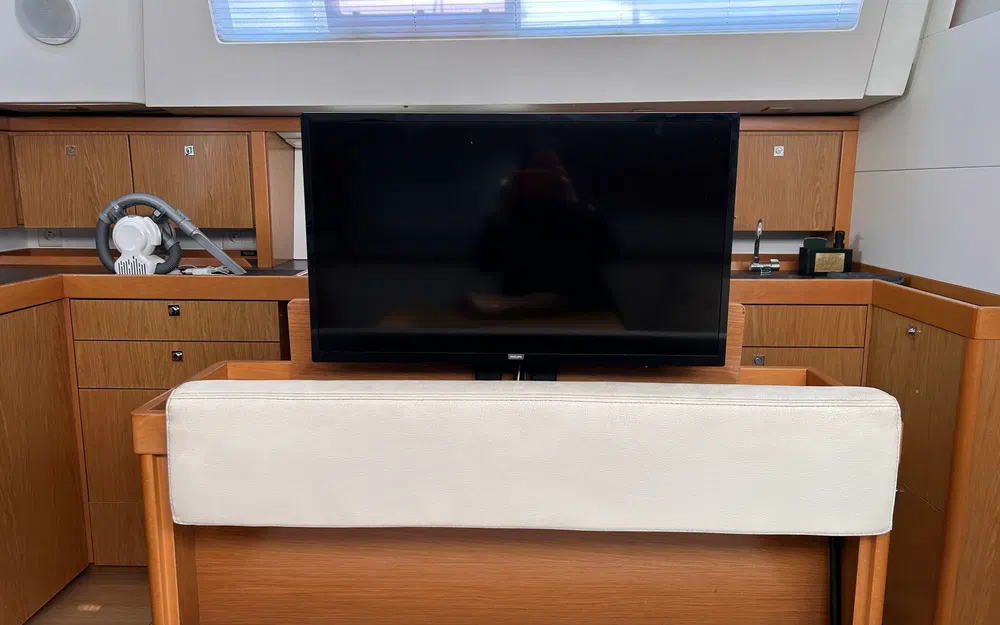 Passionné de voile, vous profiterez d’un génois en bon état, grand-voile, trinquette, winchs électriques, lazy bag, capote de descente. La sécurité et l’électronique sont au rendez-vous : AIS, pilote automatique, VHF (portable et fixe), compas, loch, sondeur, girouette-anémomètre, table à carte... Amateurs de confort : éclairage LED intérieur, radio CD avec hauts-parleurs, télévision, rideaux complets.
