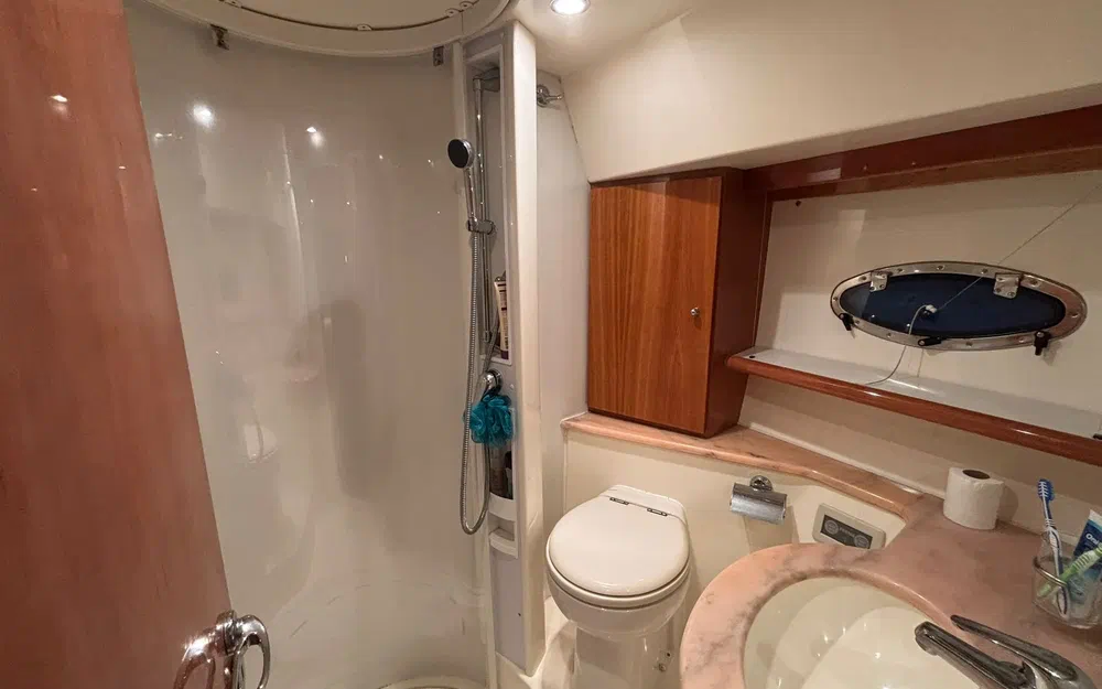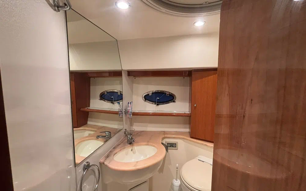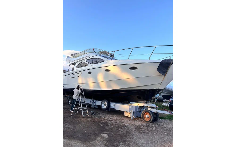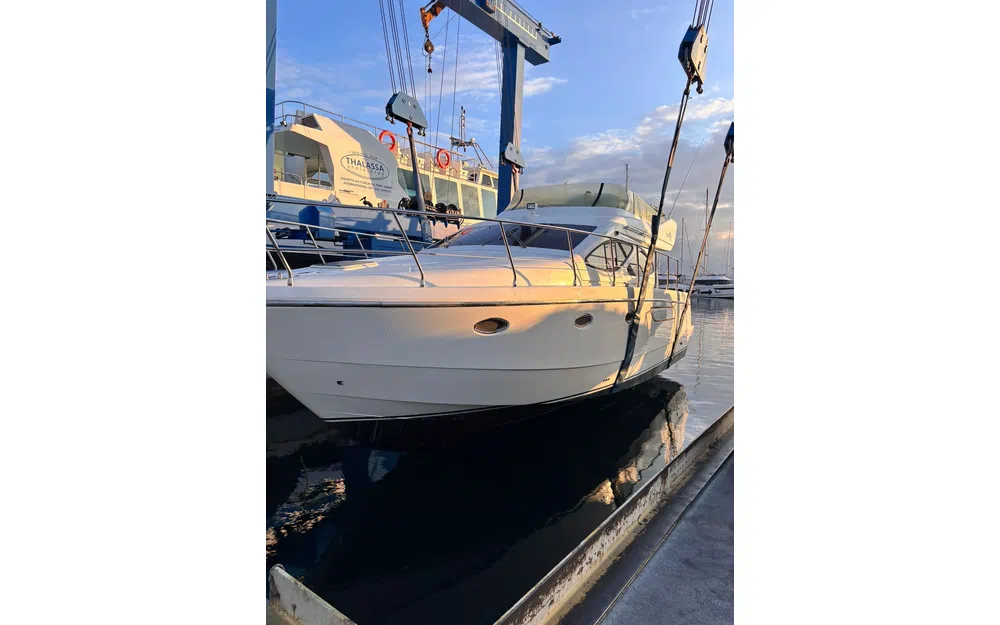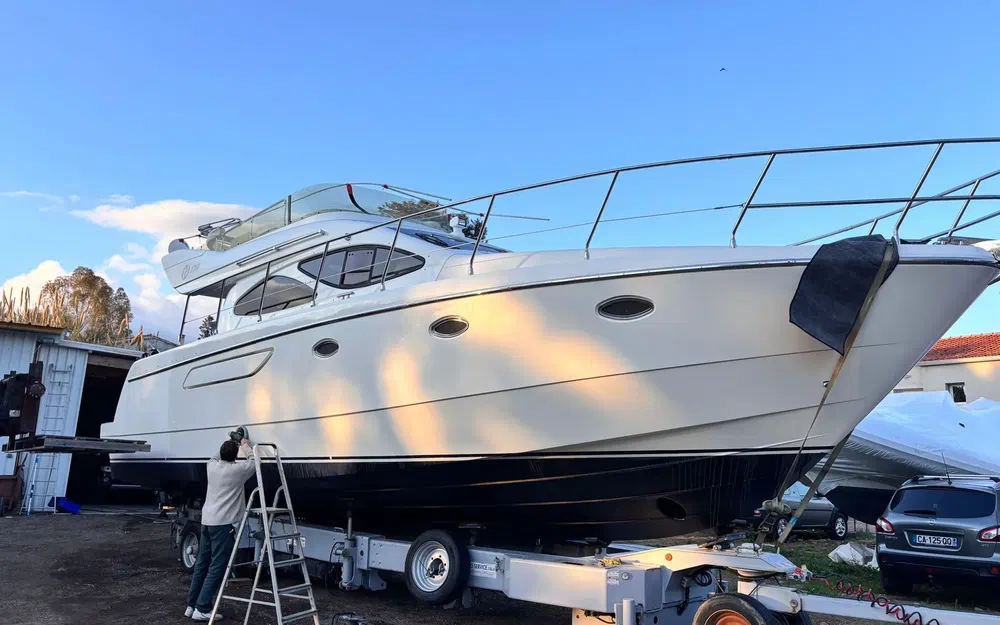 Des travaux importants ont été réalisés récemment, garantissant une mise à niveau technique complète. Les vidanges ont été effectuées, les bagues d’arbres remplacées, l’ensemble des vannes changé, les anodes renouvelées, les échangeurs nettoyés et révisés. Les presses-étoupes ont été remplacées par des systèmes Profiseal, reconnus pour leur fiabilité. Les selleries du flybridge et du bain de soleil ont également été remplacées.