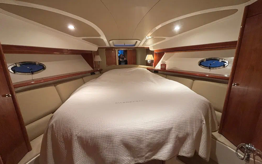 Le Carnevali 130 Flybridge est un bateau à moteur italien reconnu pour la qualité de sa construction, son excellent comportement en mer et son volume habitable particulièrement généreux dans sa catégorie. Cette unité de 2004, en très bon état, se distingue par un entretien rigoureux, des travaux récents significatifs et un très faible nombre d’heures moteurs.