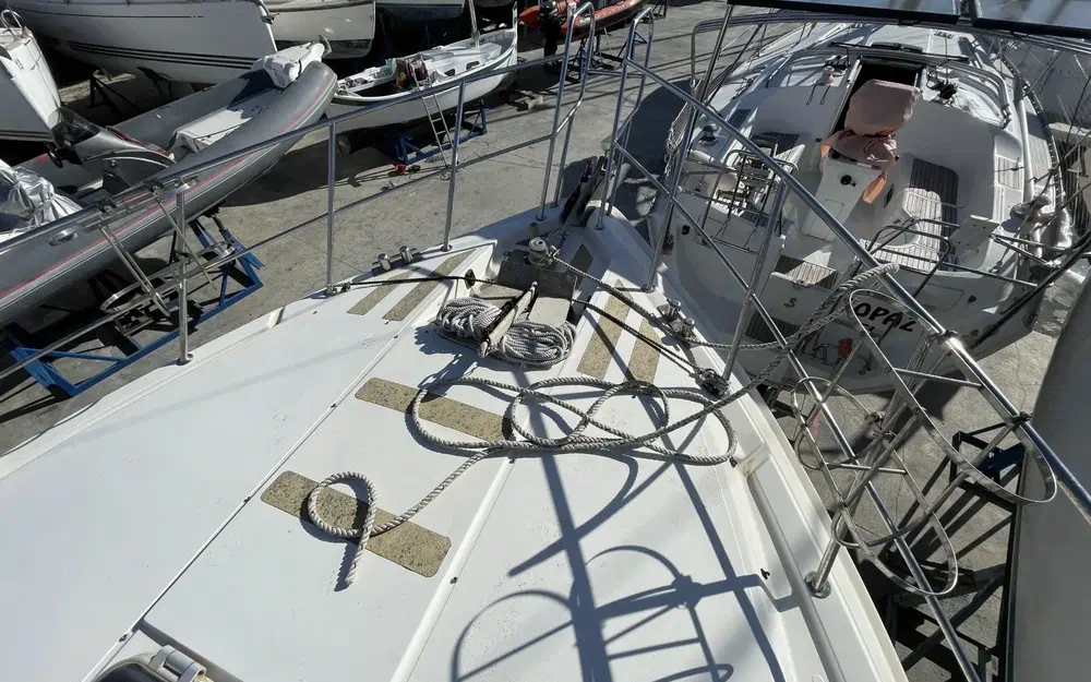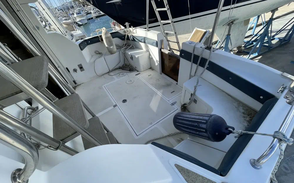 À l'exception de la coque qui nécessite un polissage, nous n'avons pas observé le moindre éclat de gelcoat, ni sur la coque ni sur le pont. Aucun délaminage n'a été constaté sur le pont. Le bateau ne présente aucun défaut structurel.