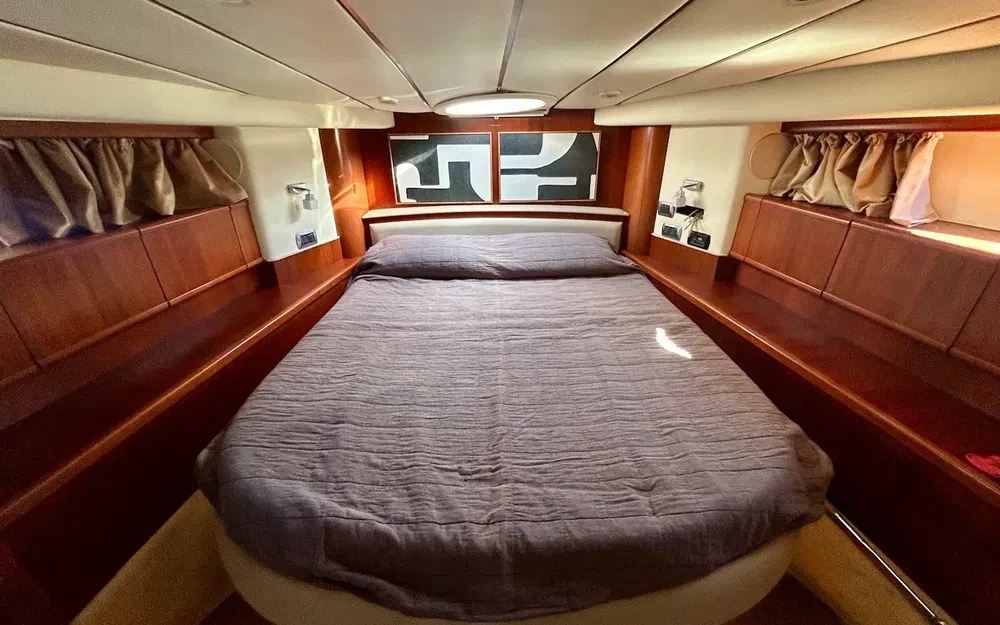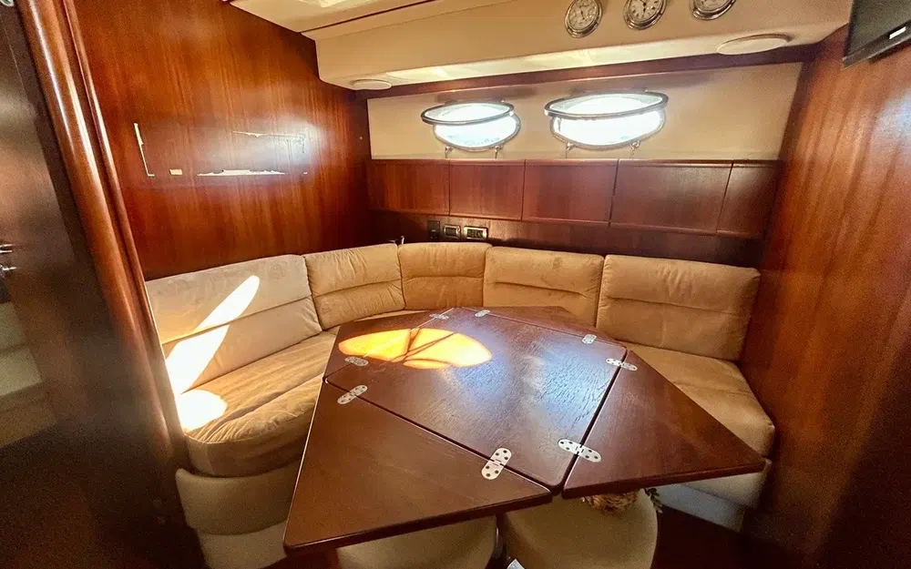 L’unité dispose d’une base saine et cohérente, offrant un fort potentiel après remise à niveau. C’est un yacht sportif qui combine élégance italienne, espaces de vie généreux et possibilités de valorisation intéressantes pour un futur propriétaire souhaitant adapter le bateau à ses standards.