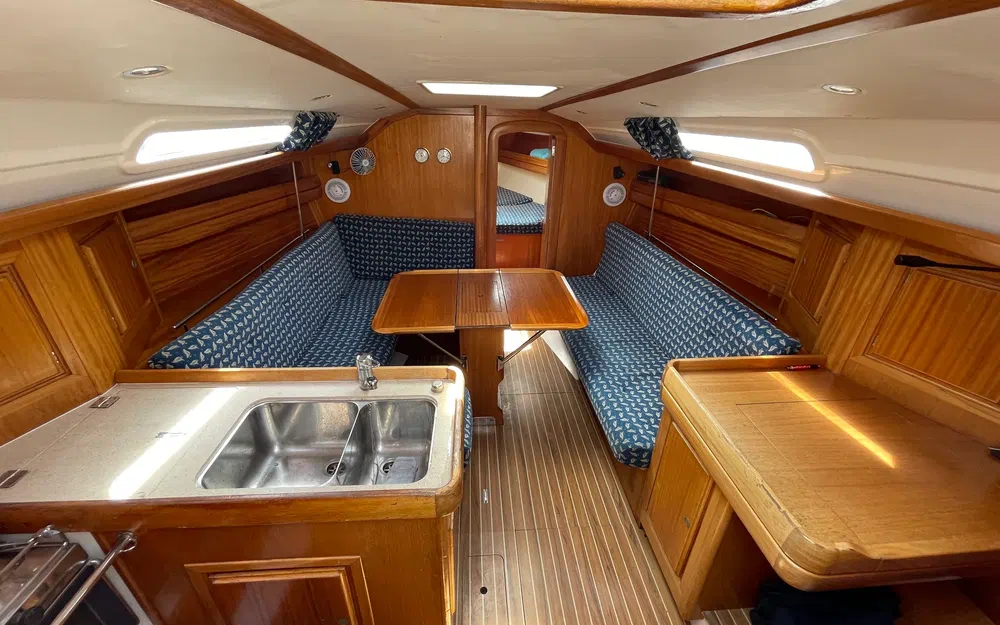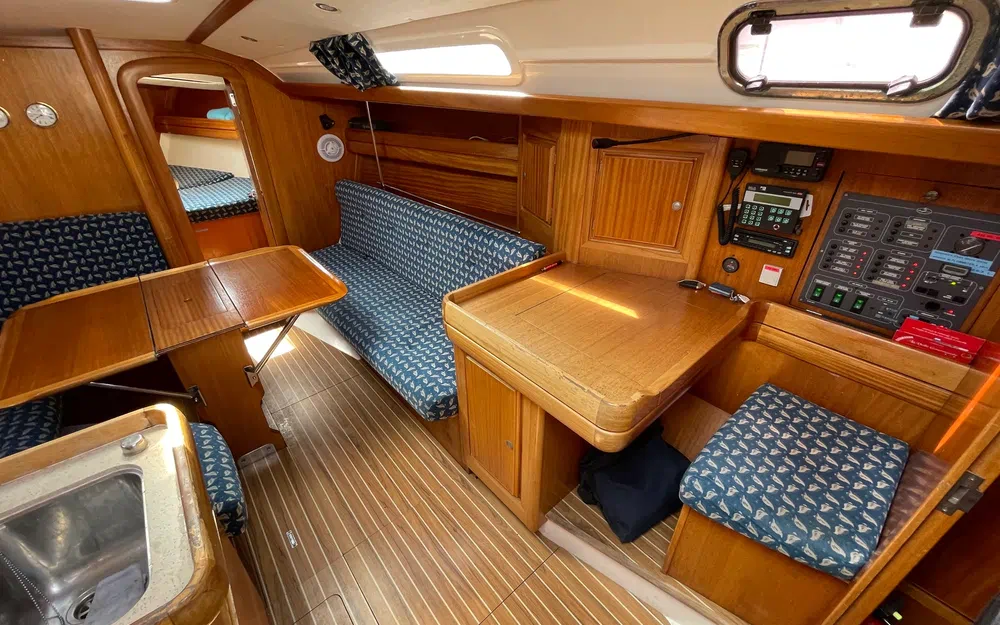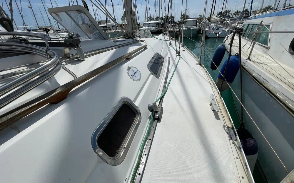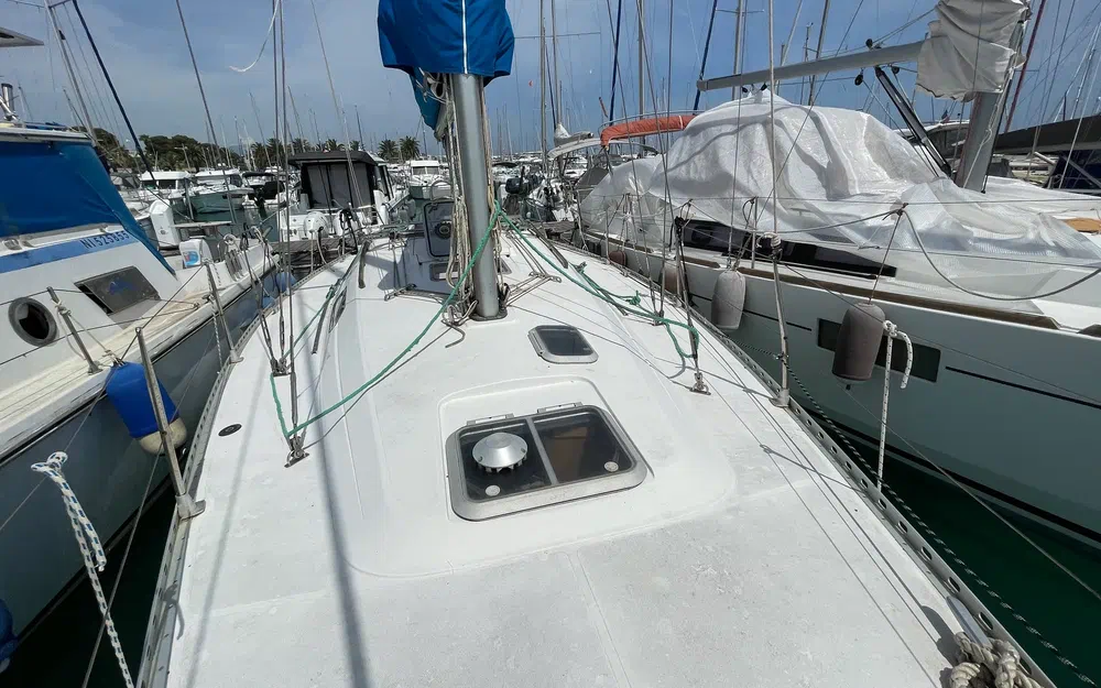 Ce voilier présente bien à l’intérieur comme à l’extérieur. Une révision moteur complète sera effectuée pour la vente, ainsi qu’un nettoyage professionnel intérieur/extérieur. Quelques remises en état sont prévues (lazy bag révisé, génois neuf non encore installé, etc.).