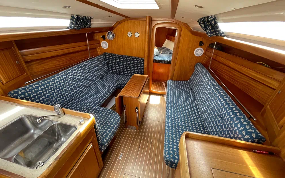 Très bon état général pour ce Dufour 35 Classic, version 3 cabines, construit en 1998 et soigneusement entretenu par ses propriétaires depuis leur acquisition en 2002. Bateau marin, robuste et confortable, idéal pour des navigations en Méditerranée. Il dispose d’un équipement complet et fonctionnel pour la croisière en famille ou en équipage réduit.