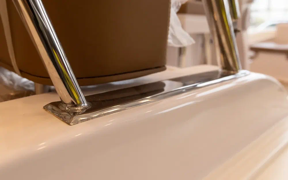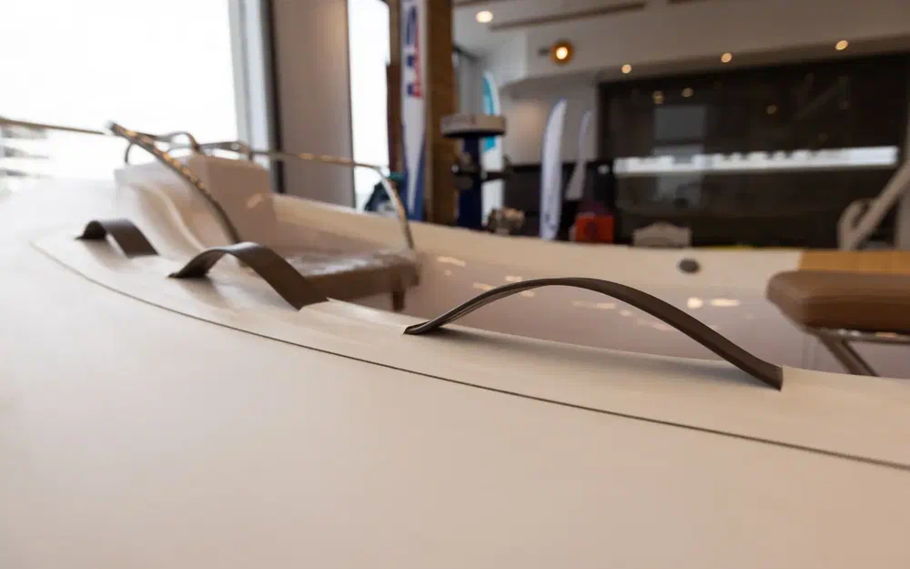 Fabrication de très haute qualité, soin du détail et finition soignée. Ce fabricant a fait le choix de résine vinylester à base d'époxy ce qui confère aux coques une résistance bien meilleure que le polyester classique. De plus, le choix de ce matériau permet une meilleure durabilité et brillance des gelcoats sur les superstructures.