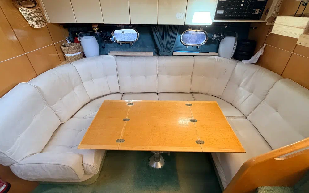 Intérieur confortable et chaleureux, typique des unités Fairline de cette génération.