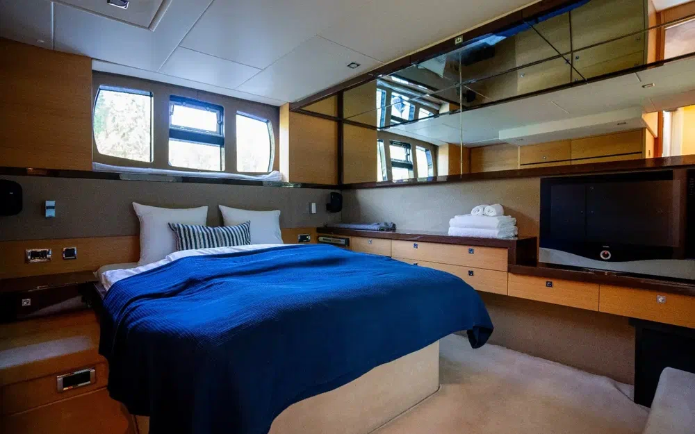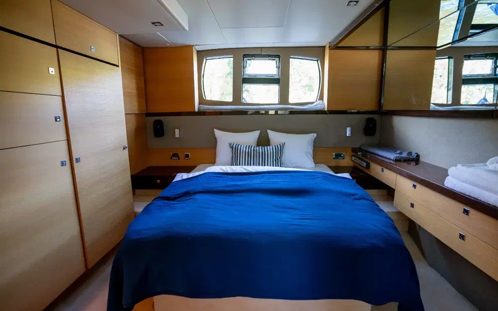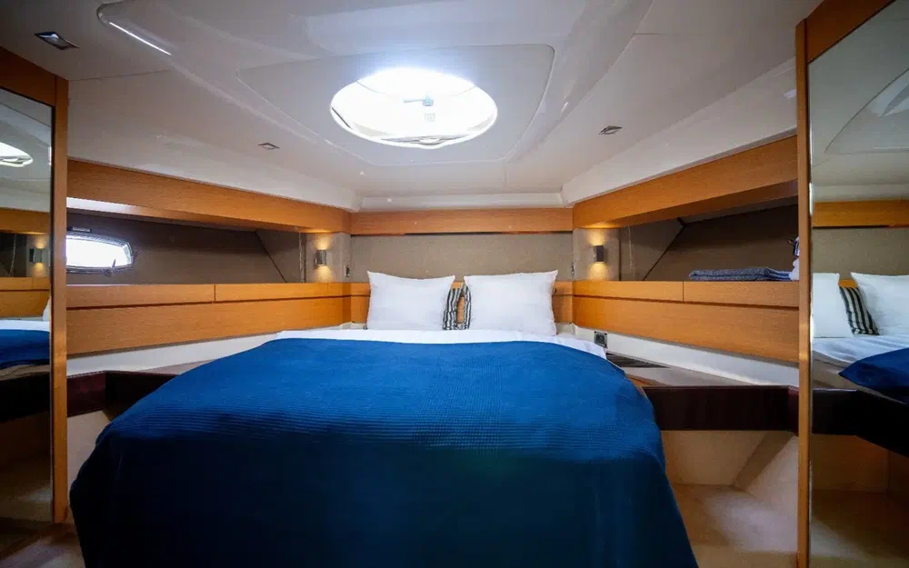 Cabine VIP à l'avant avec accès à la salle de bain.
