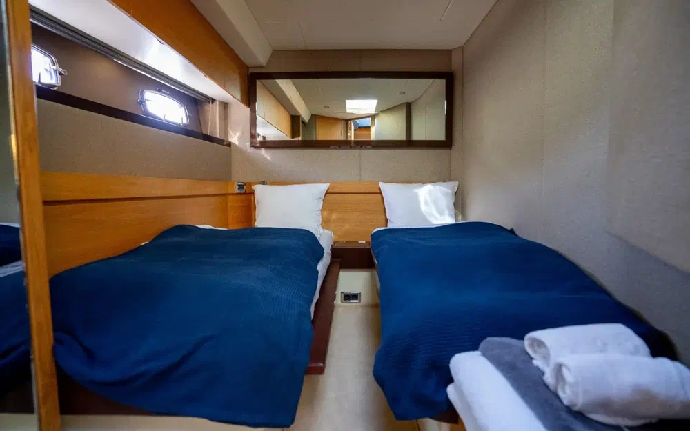 Deux lits séparés dans la cabine invités.