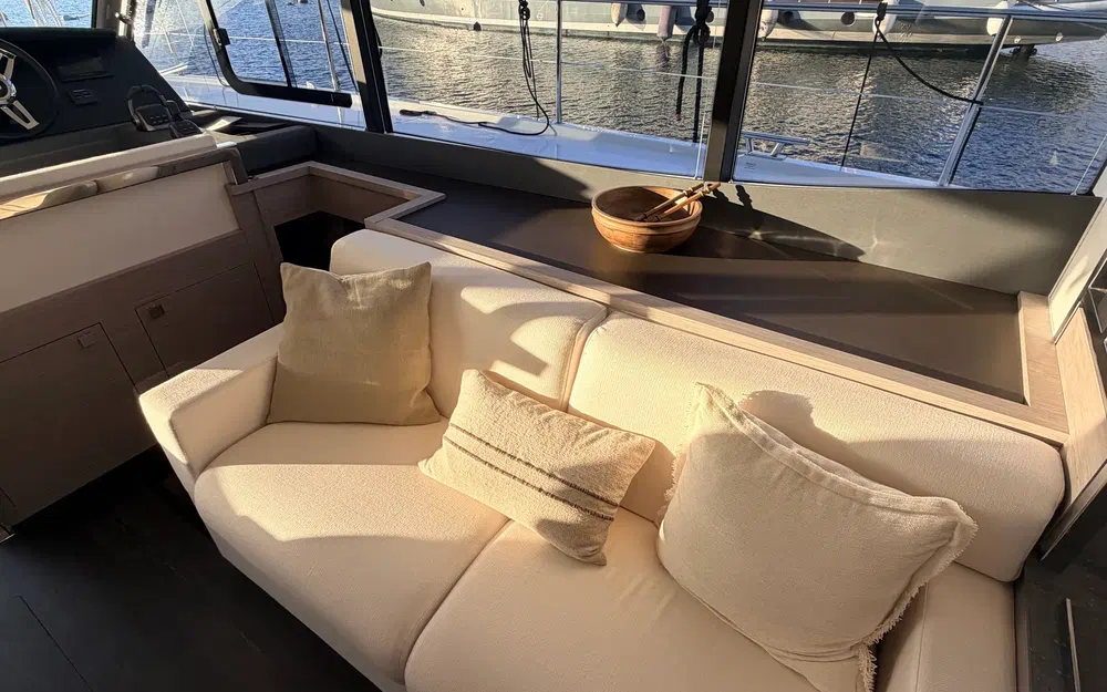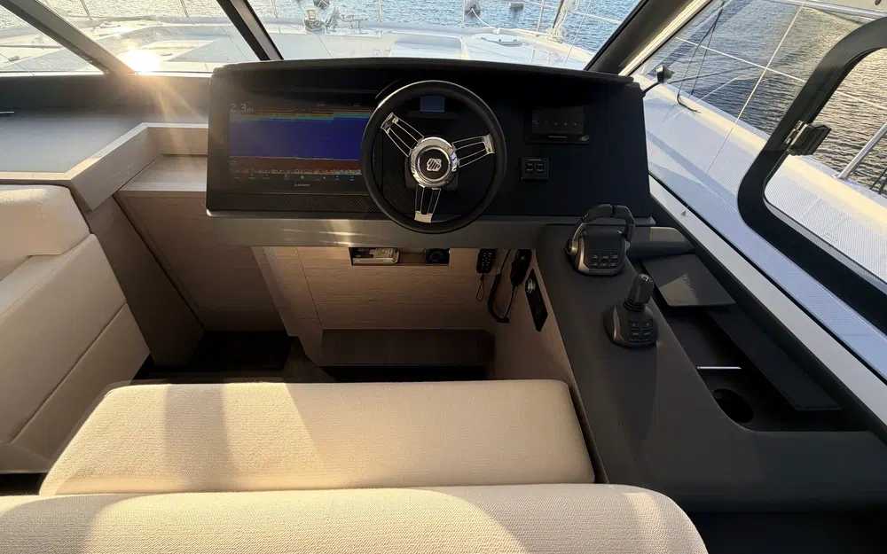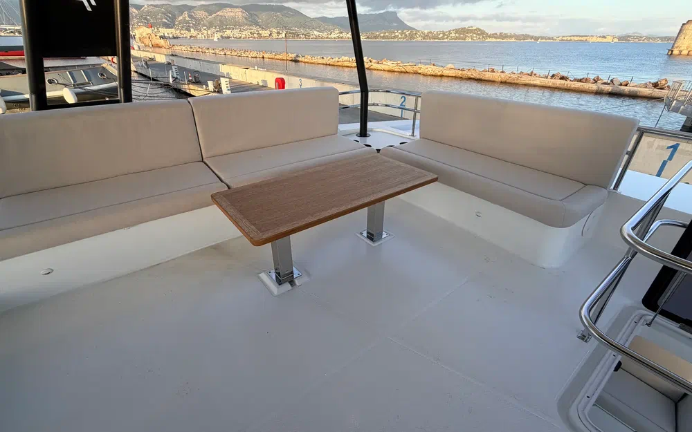 Le flybridge, véritable espace de vie supplémentaire, offre un pilotage très assisté et intuitif, permettant au capitaine de rester au cœur de la vie à bord ou, au contraire, de s’isoler pour une navigation plus contemplative.