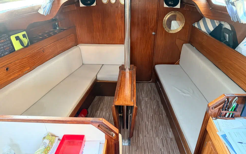 Ce Gibsea 114 de 1981 est un voilier de croisière réputé pour sa robustesse, son volume intérieur et son excellent comportement en mer. Avec ses 11,40 m de longueur (12 m avec jupe arrière) et sa largeur de 3,80 m, il offre une habitabilité remarquable pour cette catégorie.