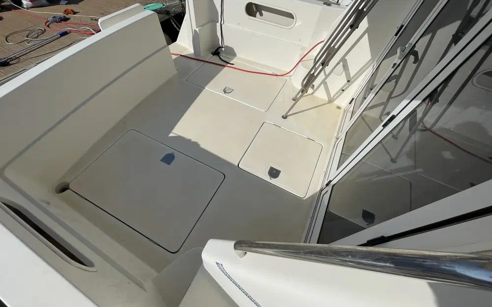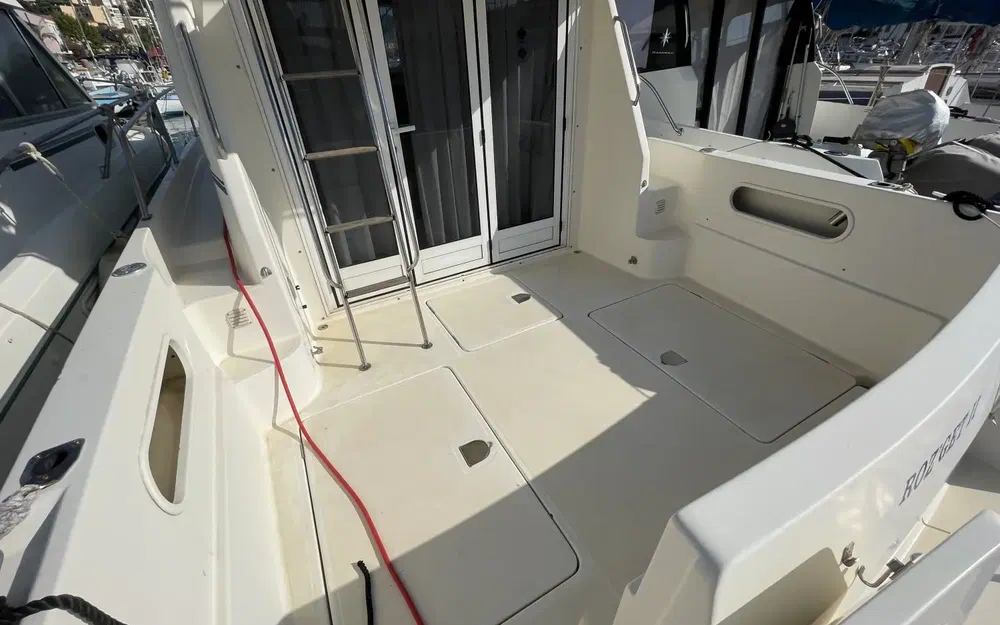 L'extérieur du bateau est dans un état remarquable. Le gel coat est en excellent état, presque parfait, reflétant les soins apportés à l'entretien du bateau au fil des années. La coque est en très bon état et un carénage complet sera effectué avant la vente, garantissant ainsi une coque propre et prête pour la saison. La structure est solide, avec une peinture brillante qui témoigne de la qualité de la construction Rodman.