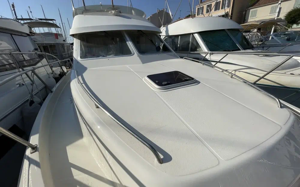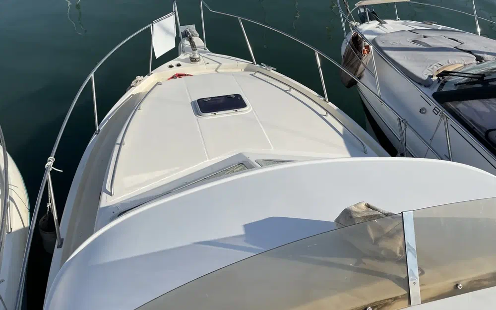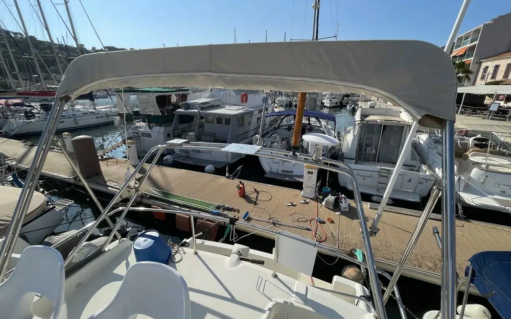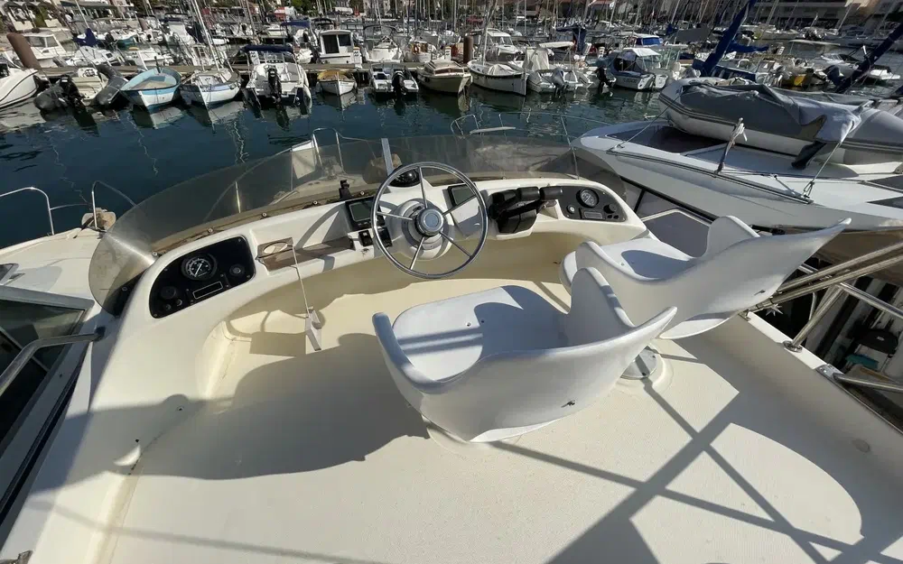 Le bateau est équipé de deux moteurs Volvo Penta de 230 cv chacun, totalisant une puissance de 460 cv. Les moteurs sont propres, assurant des performances fiables en mer. Cette puissance permet des navigations sereines et efficaces, avec une consommation maîtrisée.