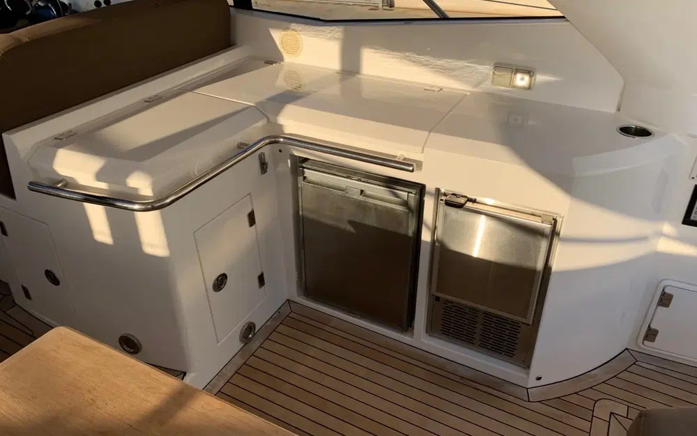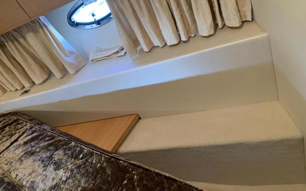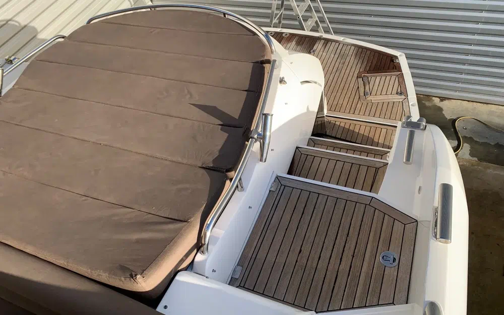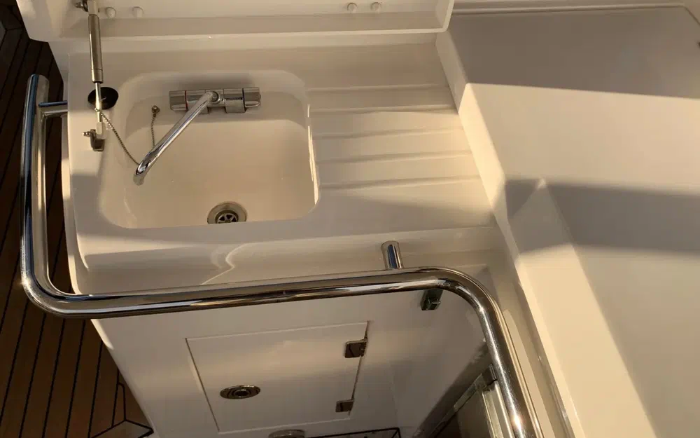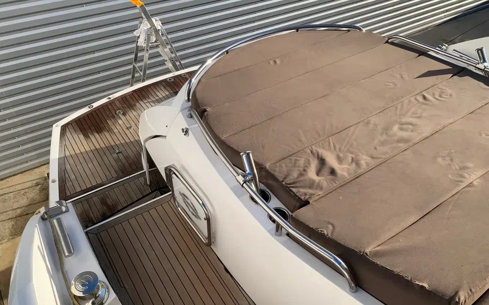 A l?exception de la coque qui nécessite un polissage nous n?avons pas observé le moindre éclat de gelcoat tant sur la coque que sur le pont. Le teck est dans un très bon état dans la partie cockpit, l?usure est légèrement plus avancée sur la partie arrière. Les selleries sont dans un très bon état. Tous les éléments hydrauliques sont en état de fonctionnement.