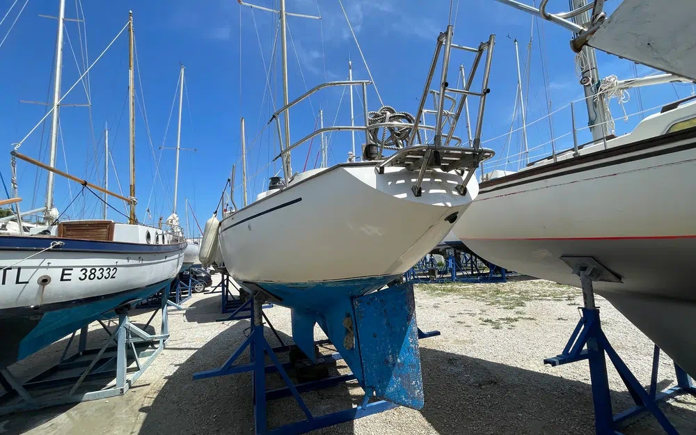 Voilier bien suivi par ses propriétaires (3 au total), actuellement hors d’eau.