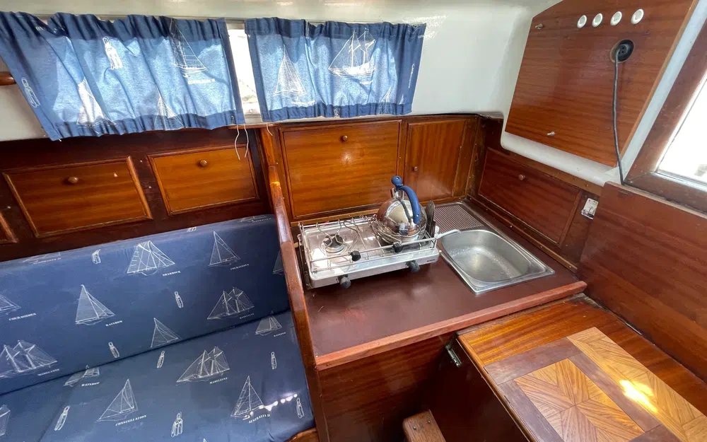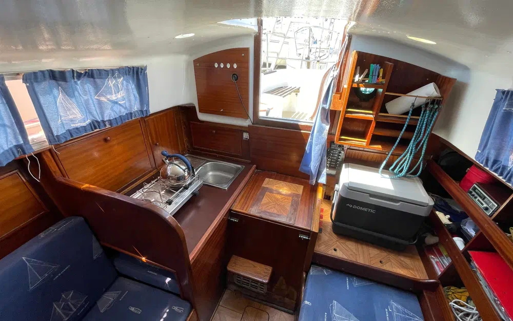 Révision mécanique complète effectuée en avril 2025. À noter : gréement dormant ancien (>10 ans), mais encore fonctionnel. Intérieur propre, prêt à embarquer.