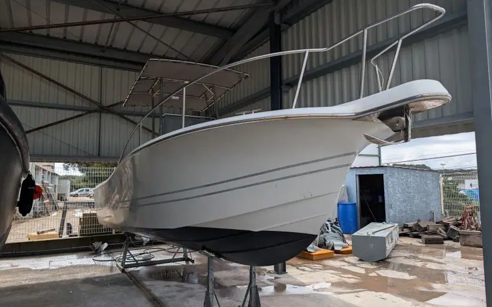 Avec ses 6,94 mètres de longueur pour 2,40 mètres de largeur, le White Shark 225 offre un espace à bord généreux et parfaitement agencé. Sa carène en V profond garantit un passage en mer sécurisant et confortable, idéal pour une utilisation en Méditerranée, que ce soit pour les sorties à la journée, la pêche ou les activités nautiques.